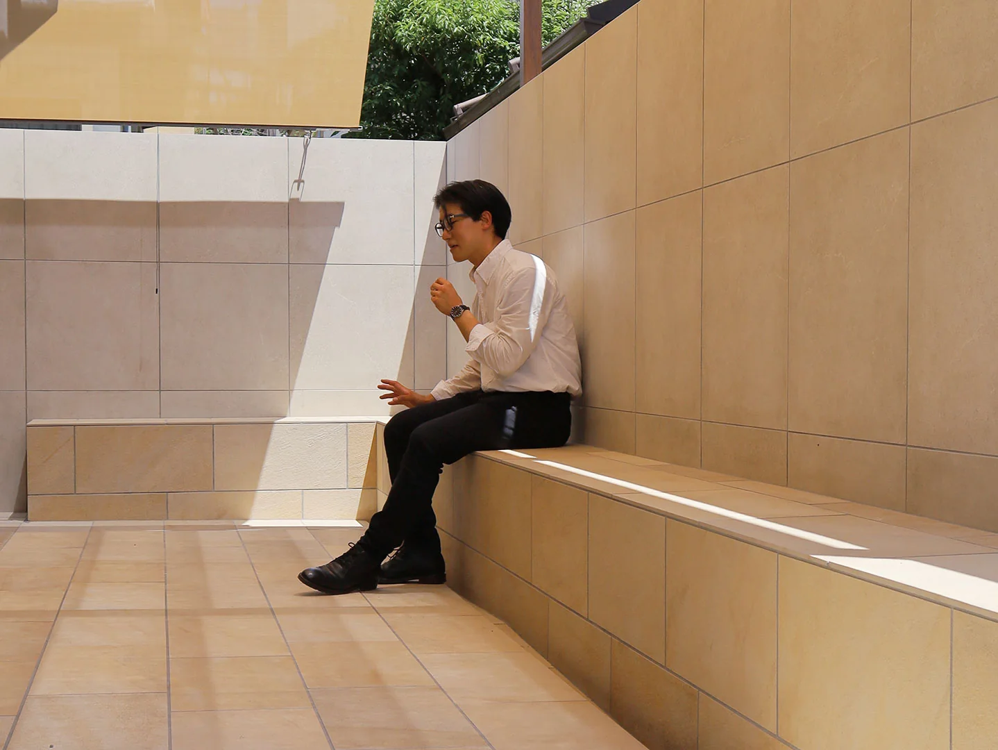 また、今回のような高さのある壁の場合、強度を出すためには一般的に「控え壁」という支えを付け足しますが、今回はすっきりとした仕上がりを実現するために全体をL字型にし、基礎を兼ねたベンチを造り付けることで、デザインと強度を両立させました。