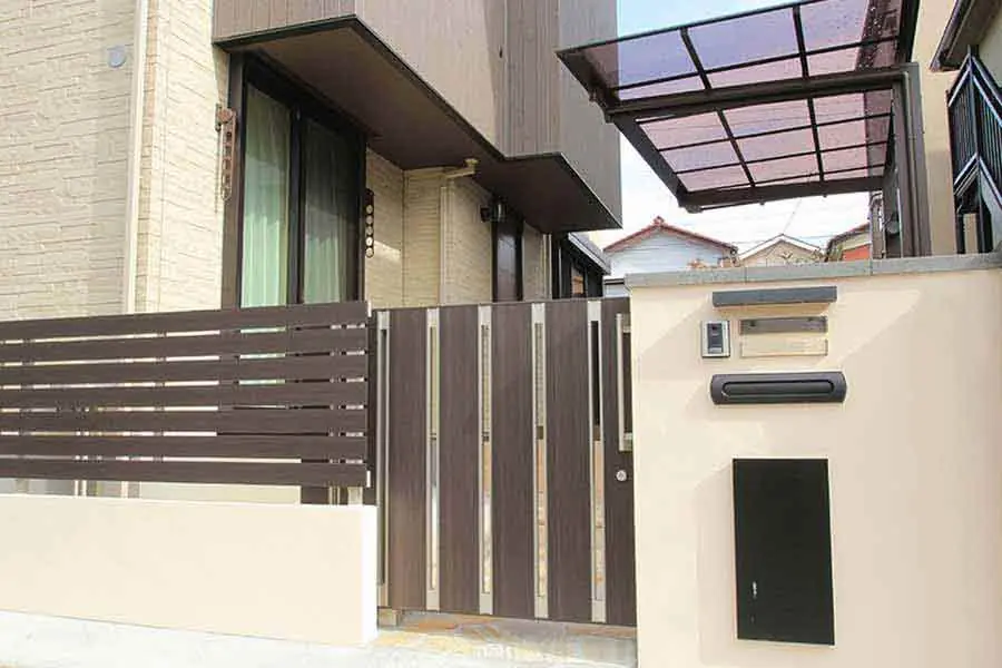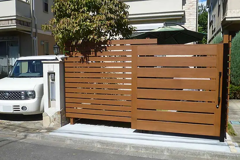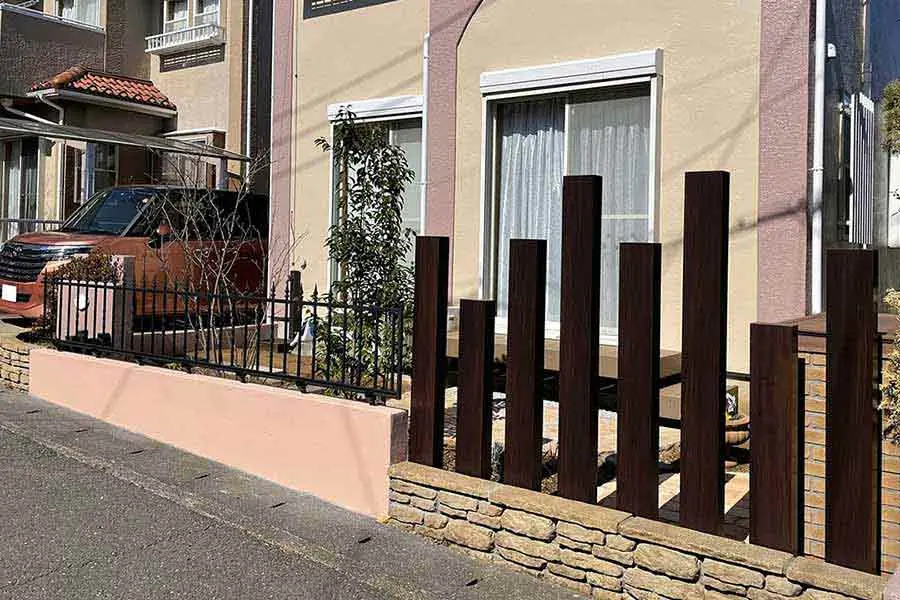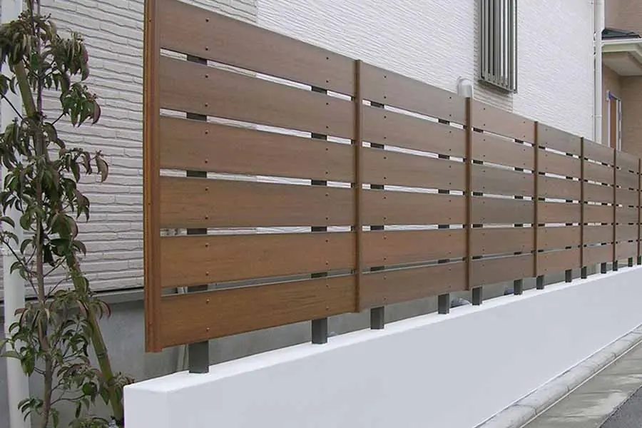 ブロックの上にフェンスを追加。ナチュラルな木目フェンス