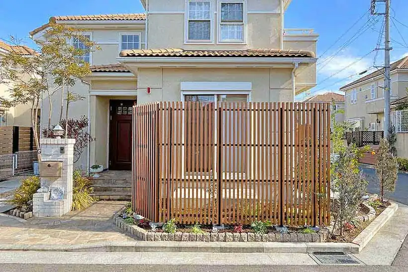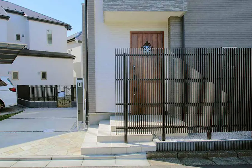 オープン外構からセミクローズ外構へ。縦格子の目隠しフェンス