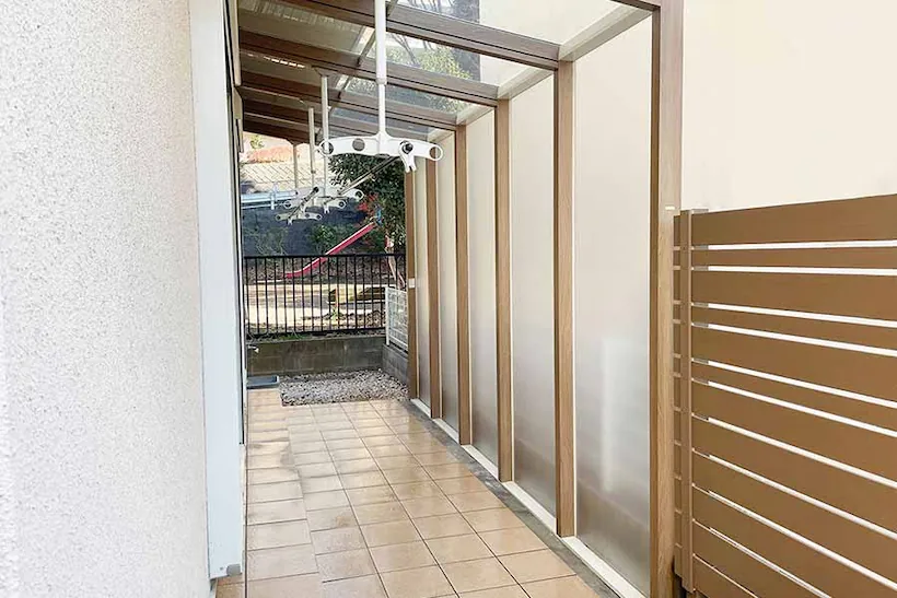目隠しを兼ねたテラス屋根で、お洗濯物干しを便利に