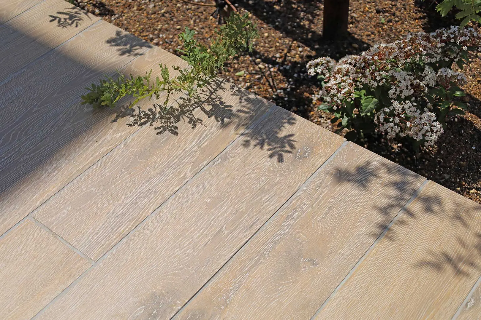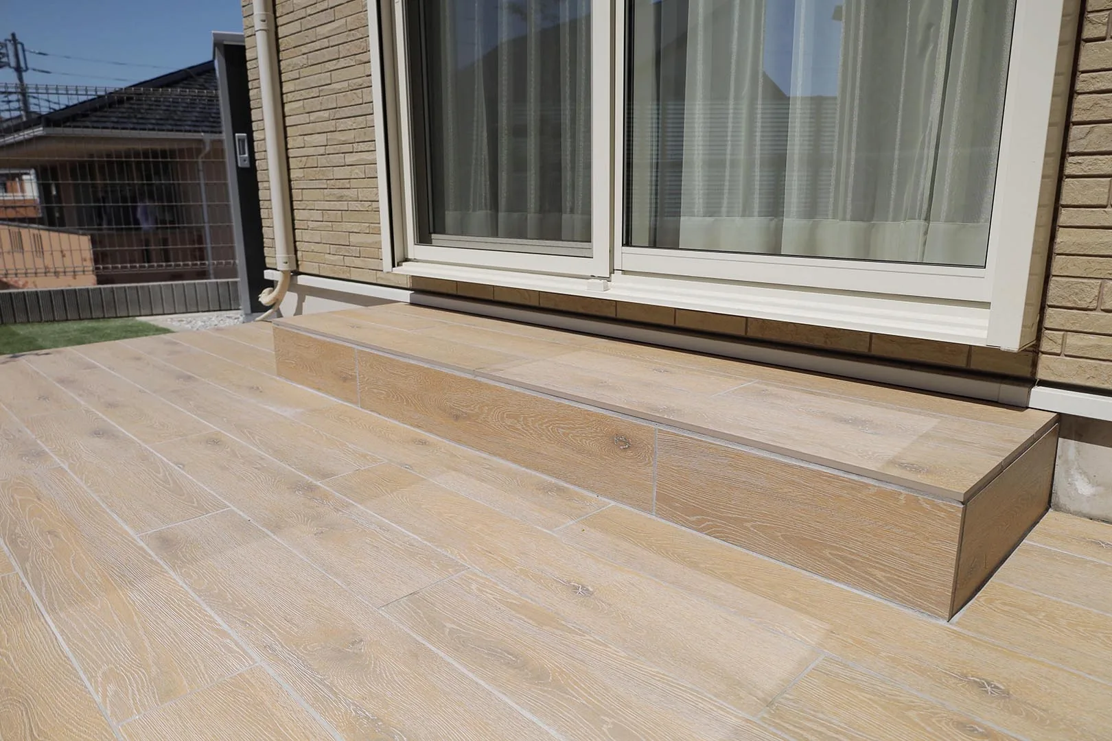 リアルな木目模様のタイルテラス