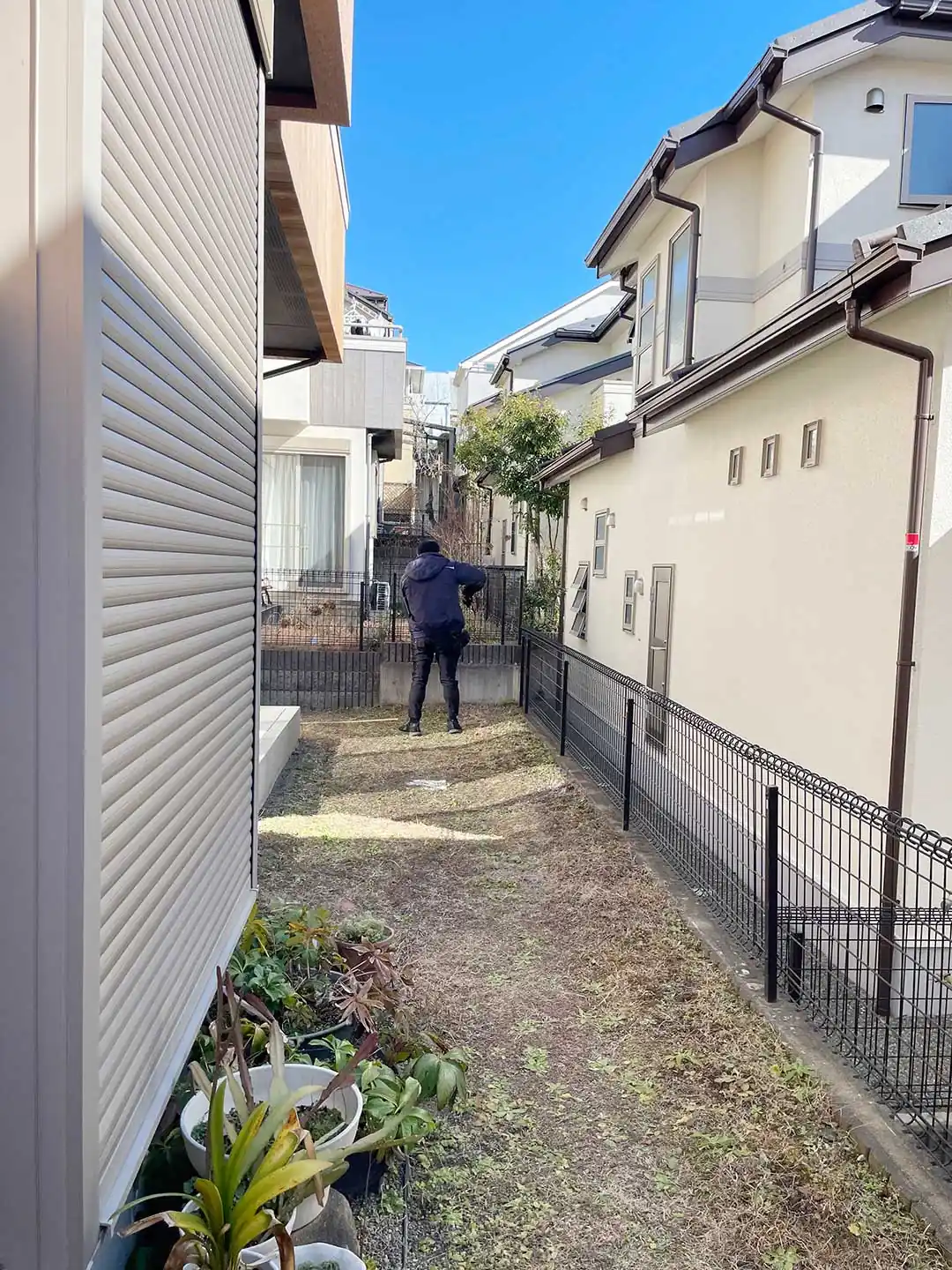 また、今回のような高さのある壁の場合、強度を出すためには一般的に「控え壁」という支えを付け足しますが、今回はすっきりとした仕上がりを実現するために全体をL字型にし、基礎を兼ねたベンチを造り付けることで、デザインと強度を両立させました。