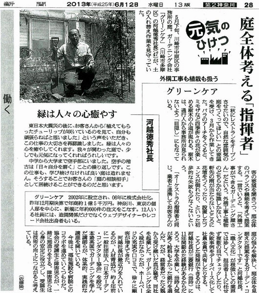 2013年3月 朝日新聞 朝刊に、弊社代表の河越が紹介されました。